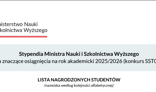 Miło Nam poinformować, że Panu Dawidowi Bonarowi – studentowi 2 roku 2 stopnia kierunku Analityka gospodarcza, przyznano stypendium Ministra Nauki i Szkolnictwa Wyższego za znaczące osiągnięcia naukowe na rok akademicki 2025/2026. Warto zaznaczyć, że na 1155 złożonych wniosków pozytywnie rozpatrzono…